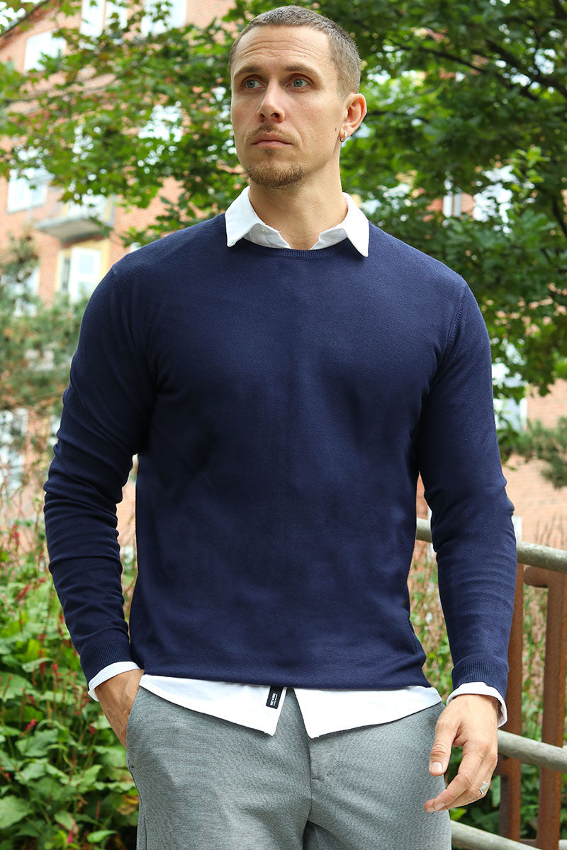 Deze comfortabele trui is een perfecte keuze voor wie op zoek is naar een veelzijdig kledingstuk dat stijl en draagbaarheid combineert. Het ontwerp is subtiel en geschikt voor volwassen mannen, met een tijdloze navy kleur die gemakkelijk te combineren is met andere kledingstukken. Het materiaal zorgt voor een aangenaam gevoel op de huid en is geschikt voor diverse gelegenheden.