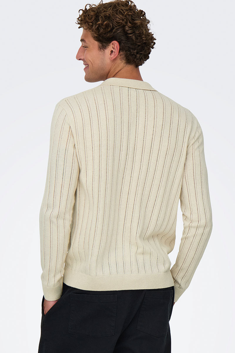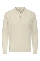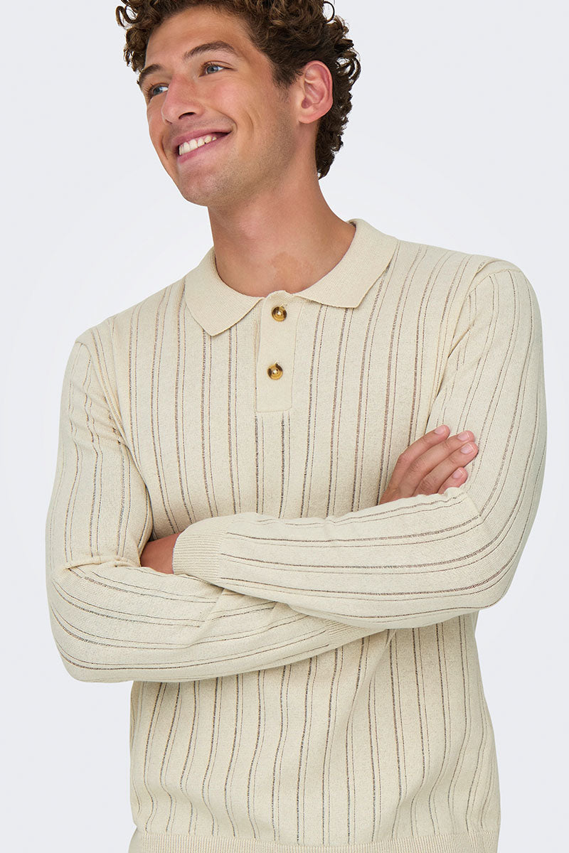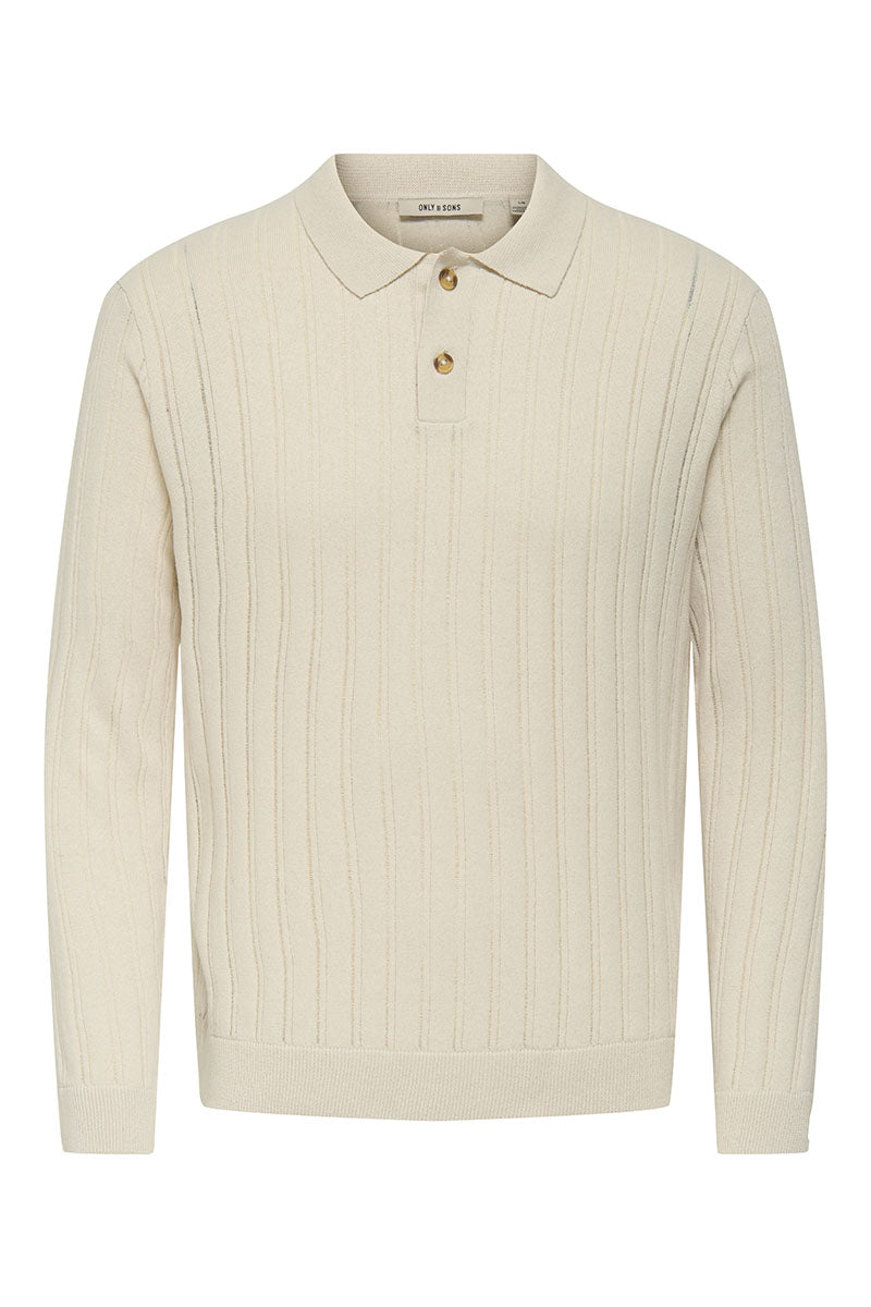 - Beige lange mouwen polo‑trui in regular fit