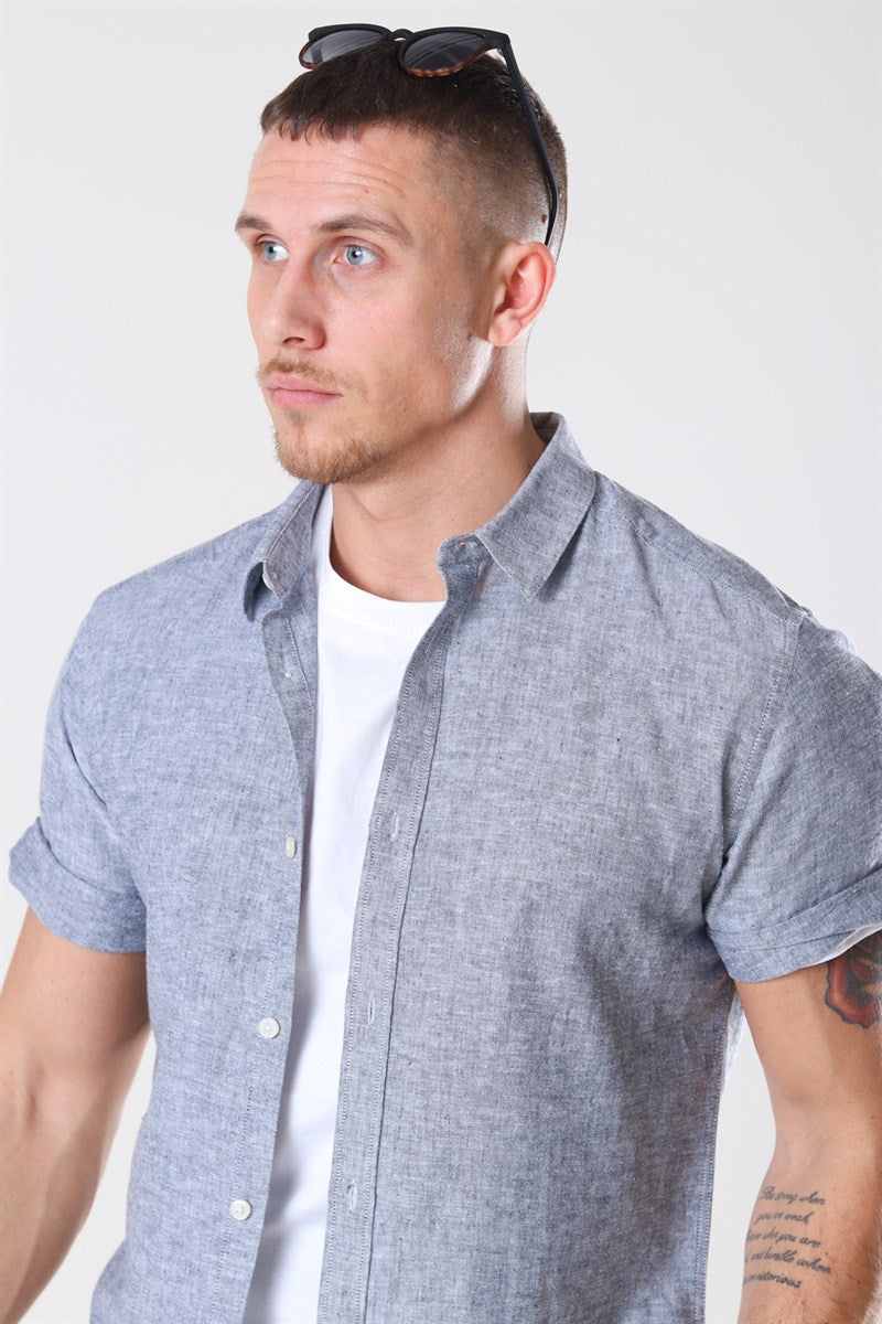 Caiden SS Linen Shirt Dress Blues