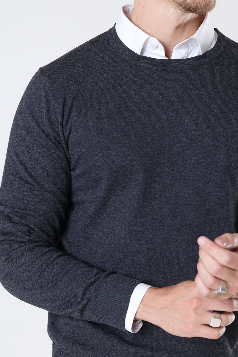 EMIL KNIT CREW NECK Dark Grey Melange