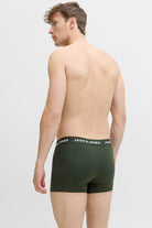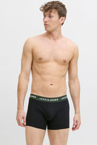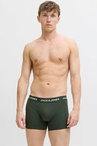 - Alle boxershorts zijn in donkere kleuren en hebben witte details op de tailleband.