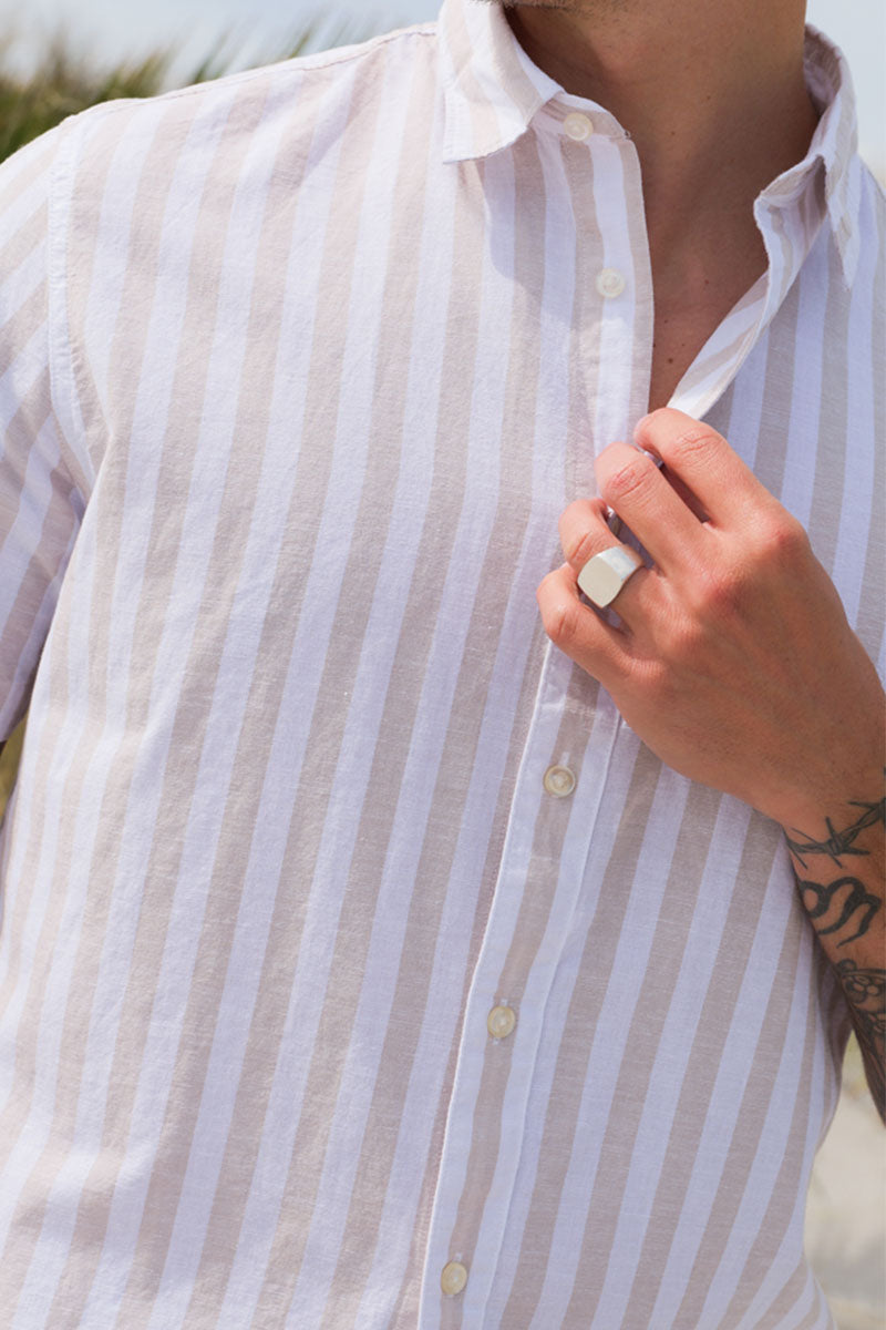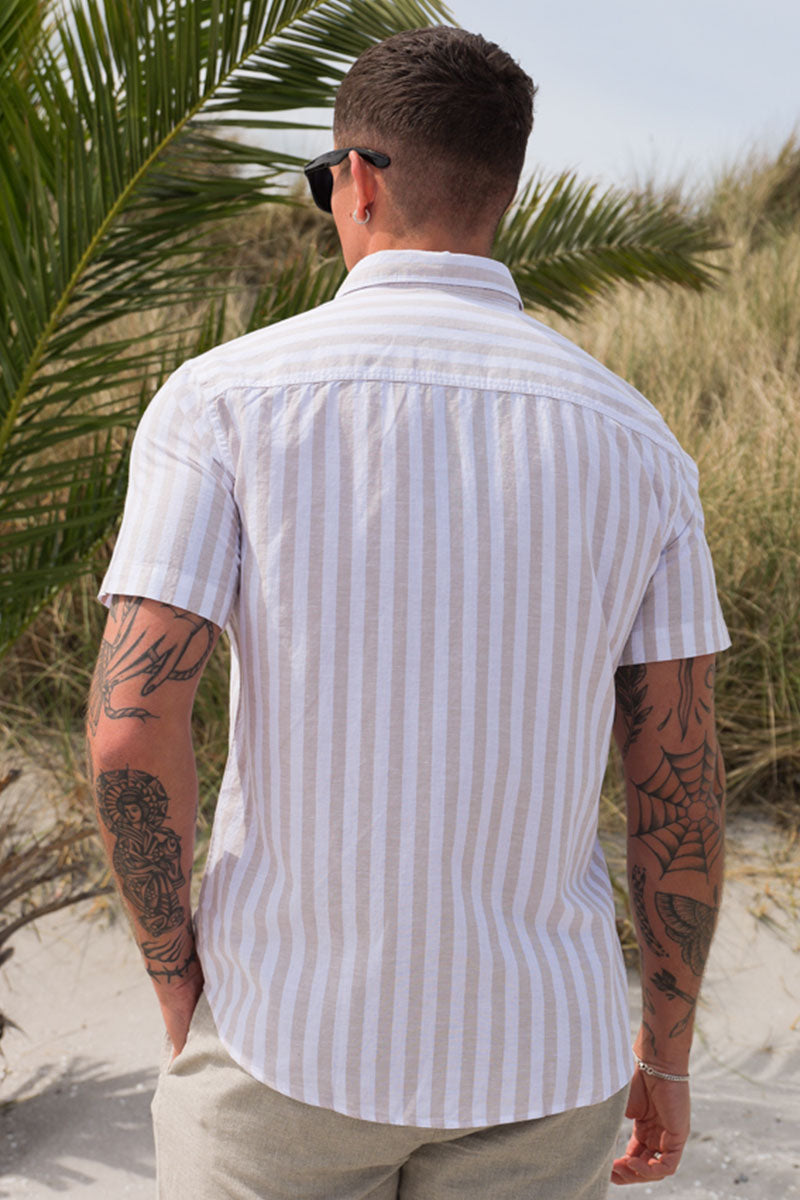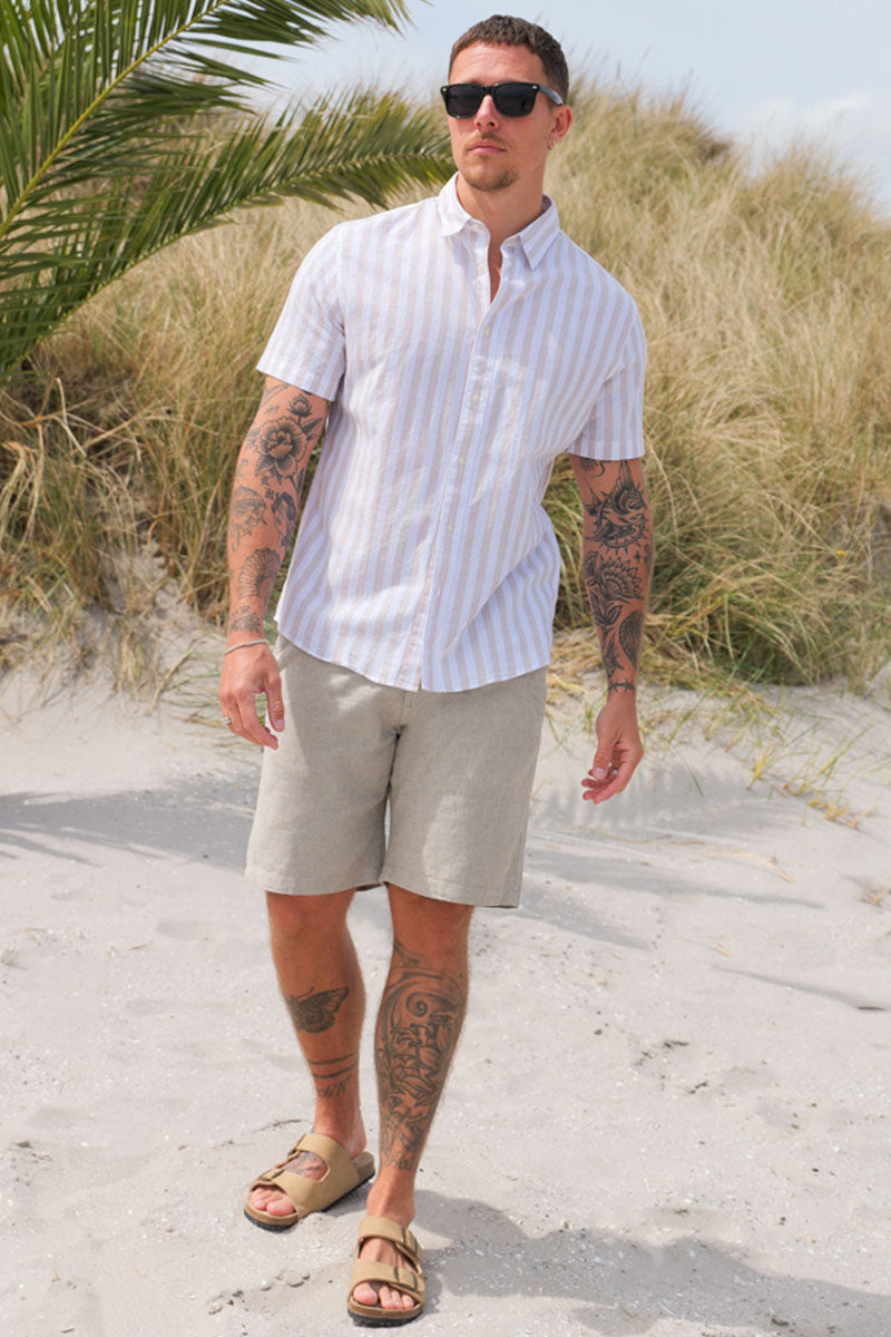 Regular Sun Linen Shirt SS Pure Cashmere Stripe