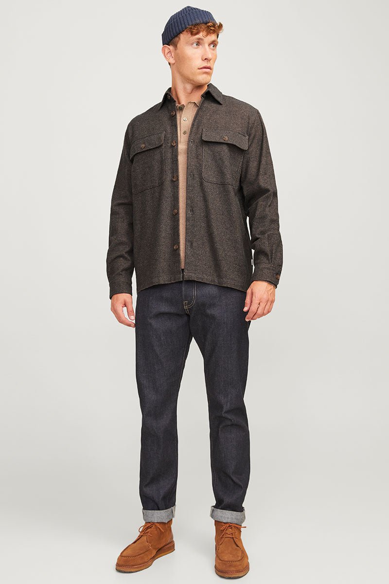 Raymond Melange Solid LS Overshirt Slate Black