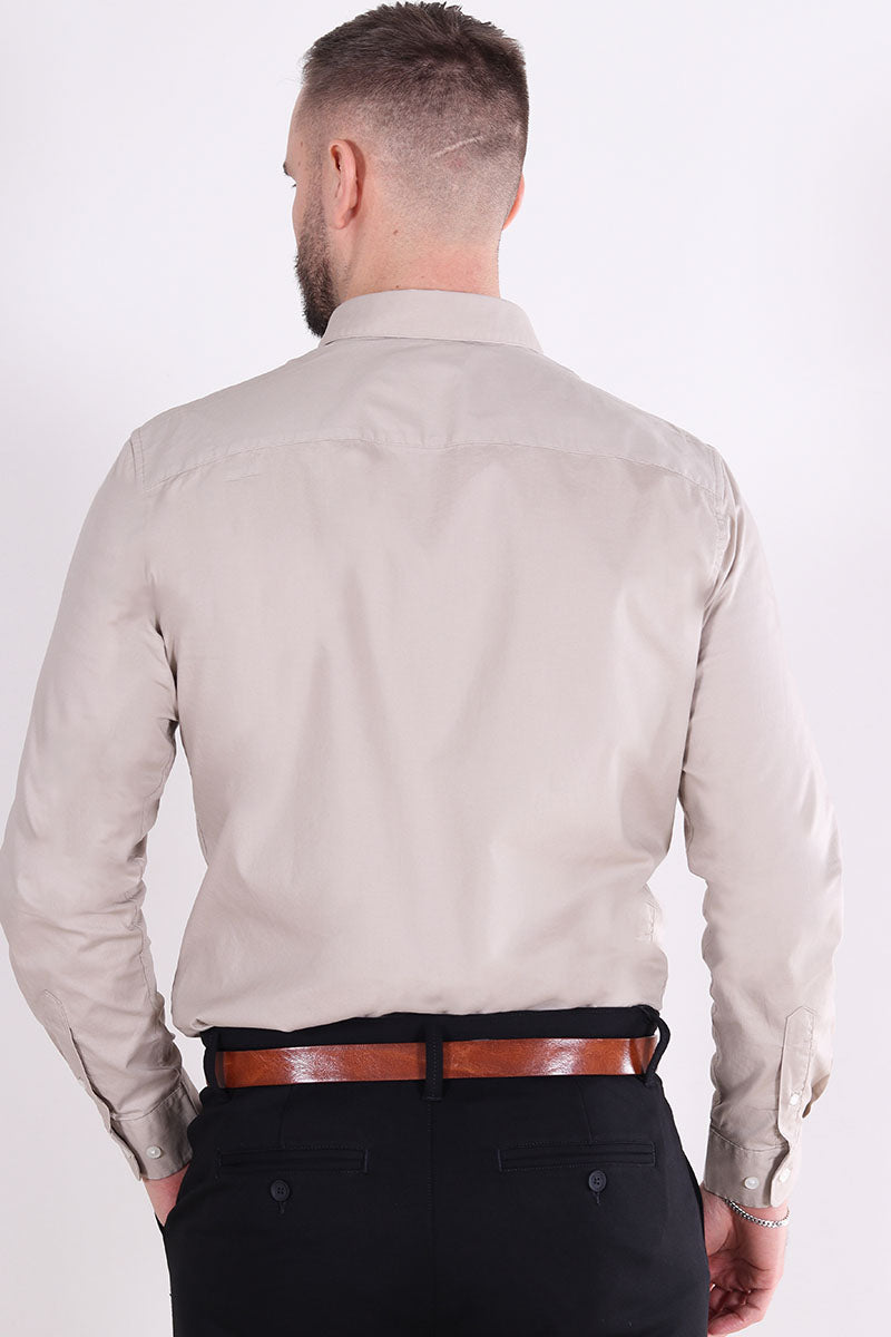 - Beige langärmelige overhemd in slim fit