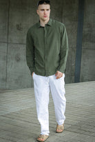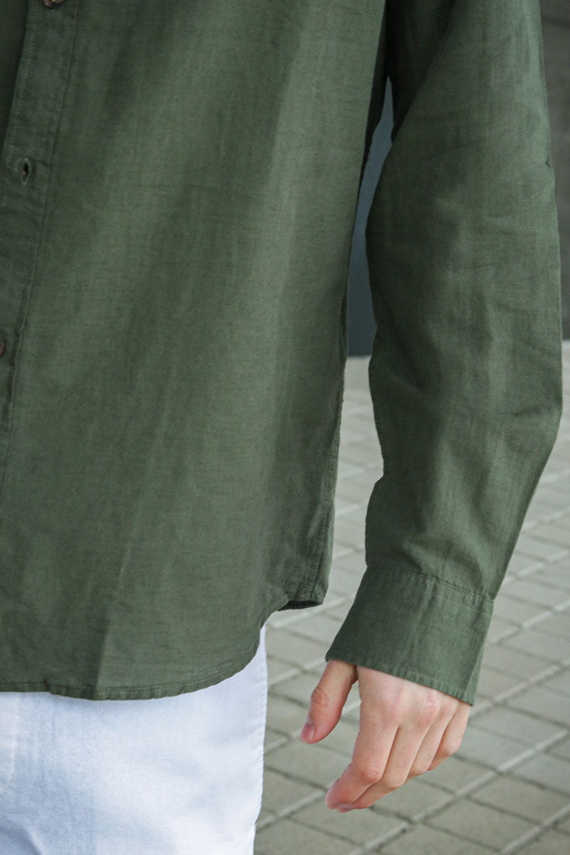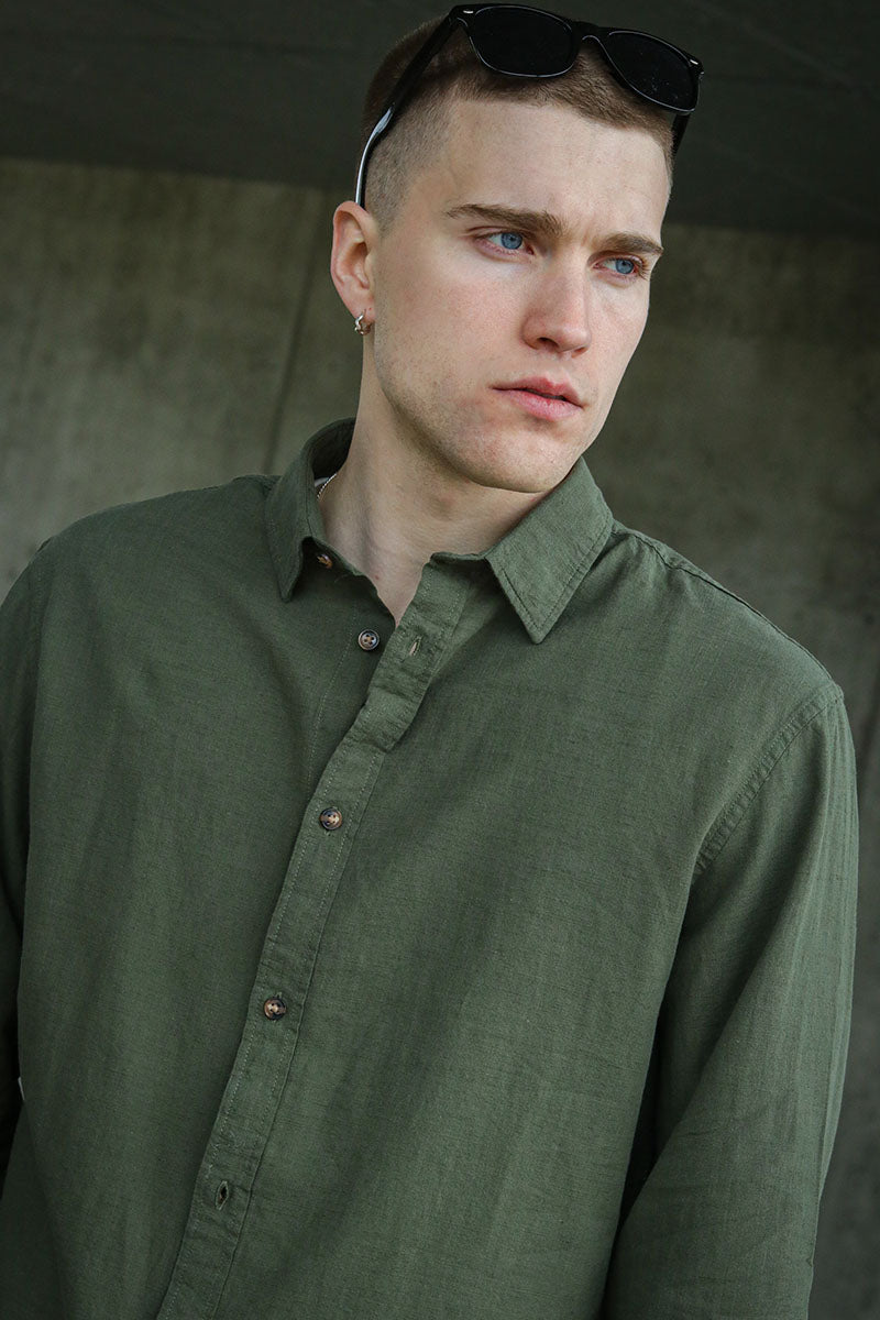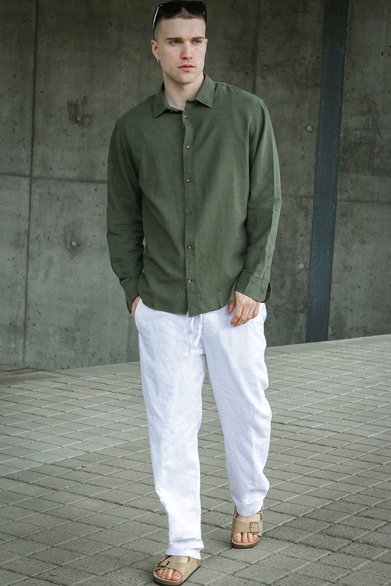 - Lange mouwen linnen overhemd met klassieke kraag