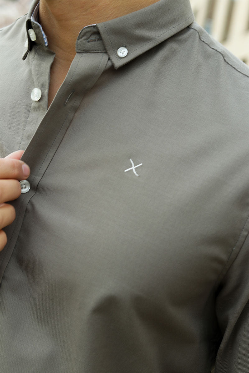 Oxford Stretch Plain L/S Dusty Green