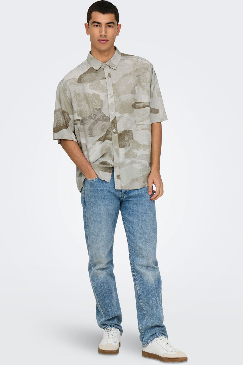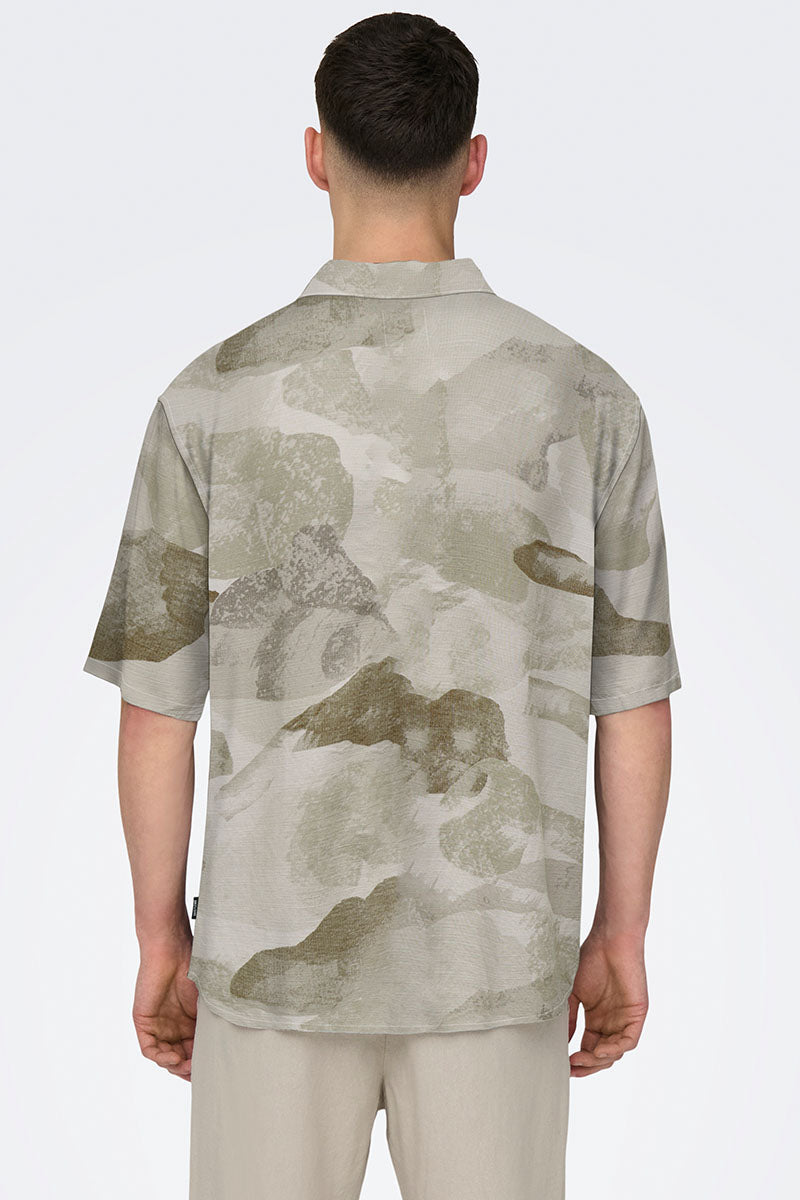 Vincent Print Resort SS Shirt Oatmeal
