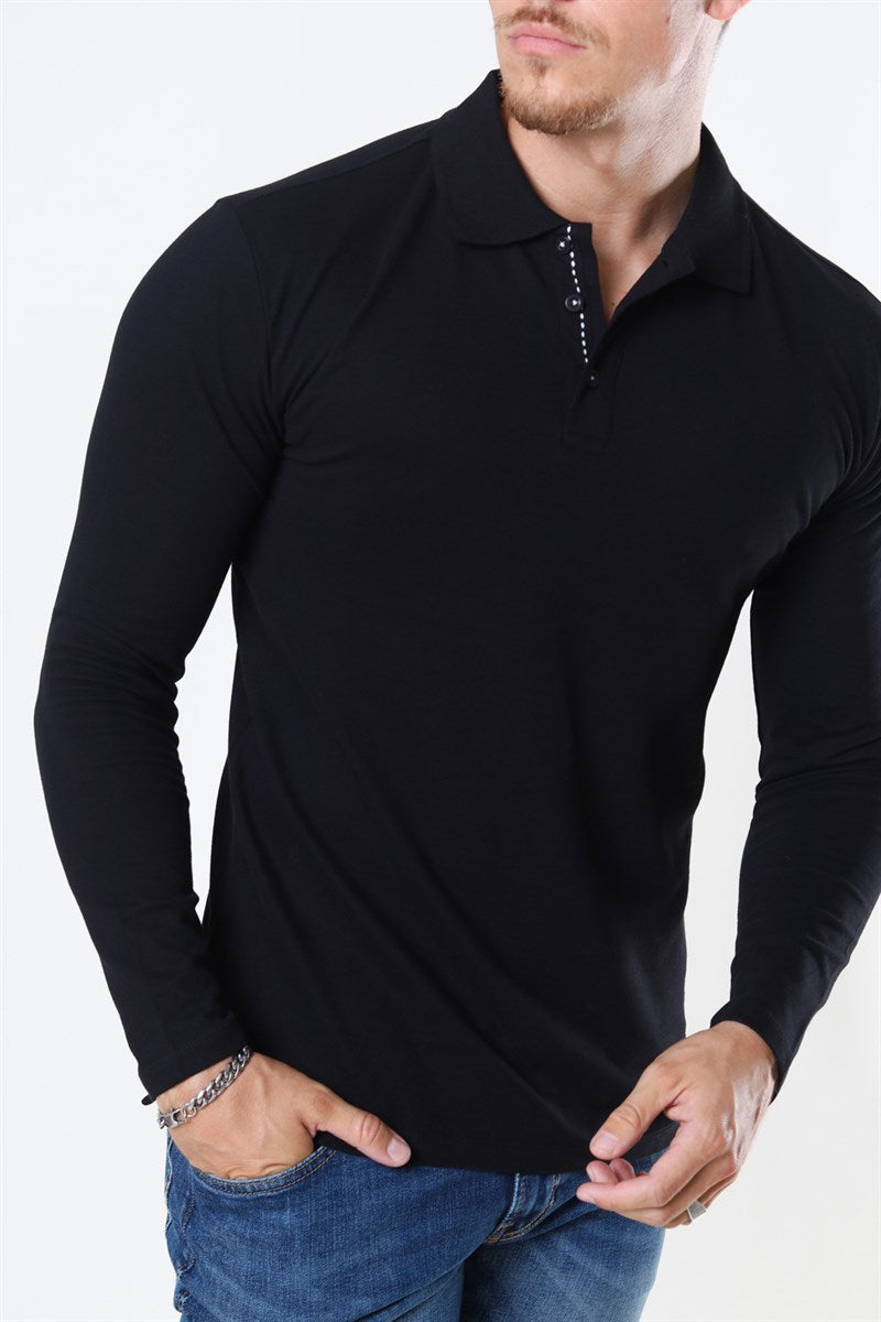 Muscle Fit Polo LS Black