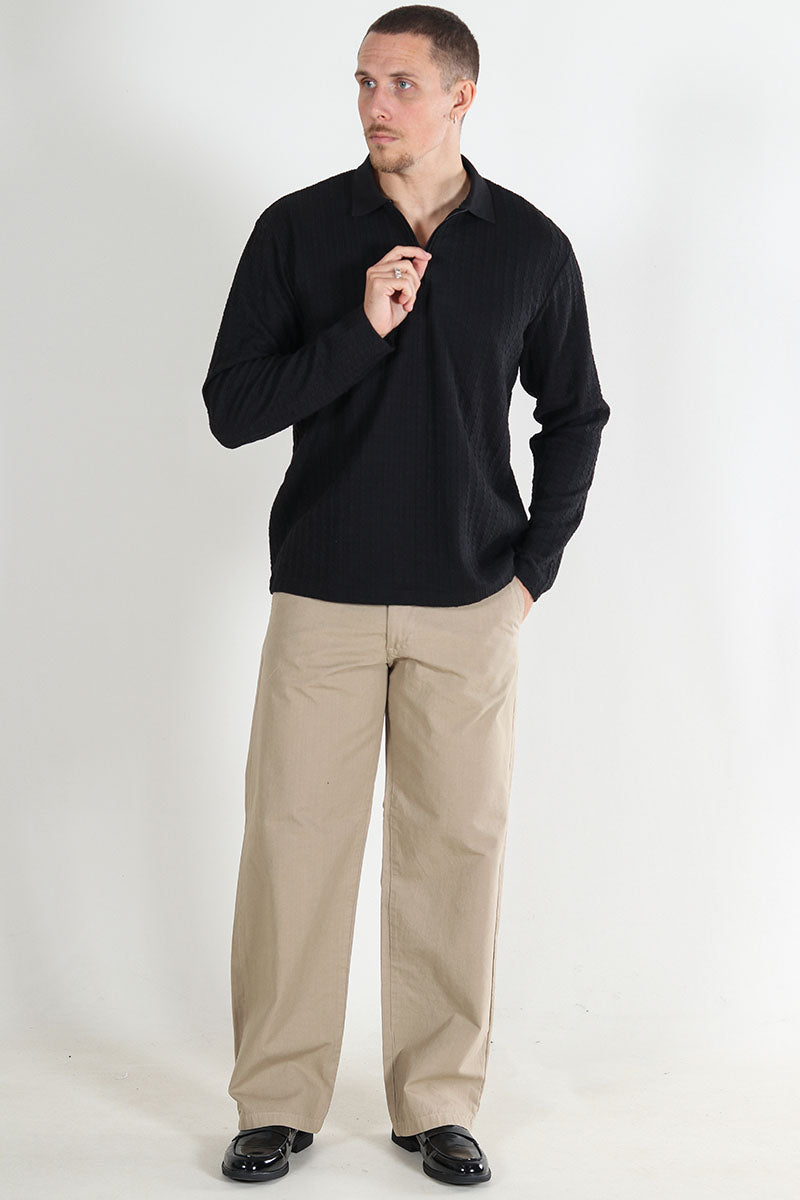 Straight Plisse Trousers Black