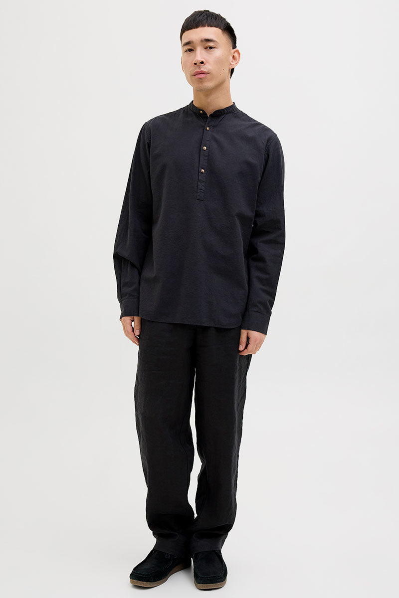 Summer Half Placket Shirt LS Black