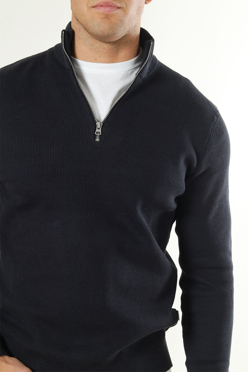 PHIL COTTON HALF ZIP KNIT Dark Navy