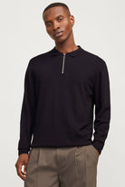 Emil Knit Polo Half Zip LS Black
