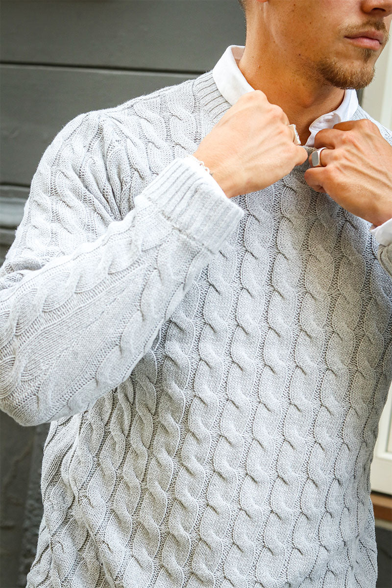 Kicker Cable Knit Crew Neck Light Grey Melange