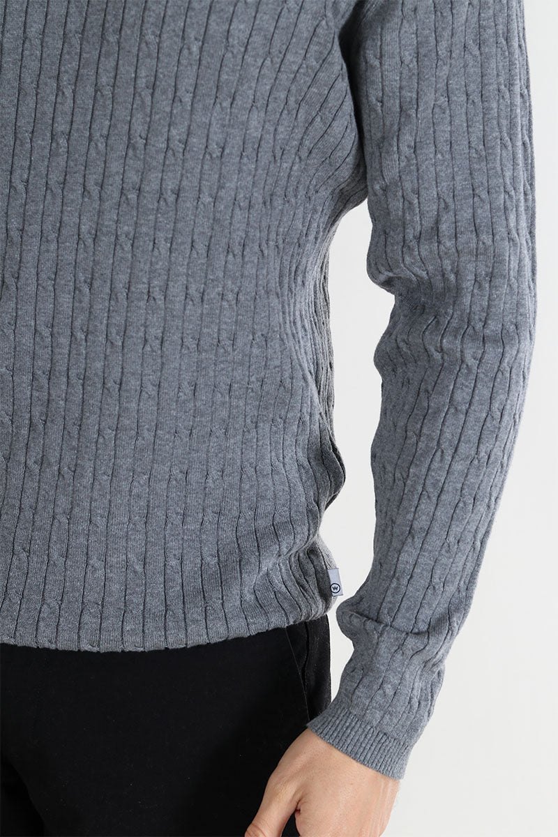Cable Cotton Knit Lt Grey Mix