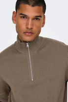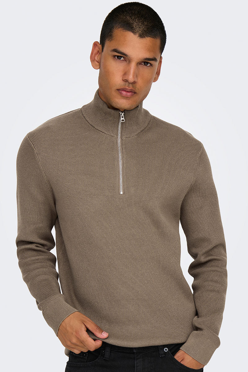Phil Cotton Half Zip Knit Desert Taupe