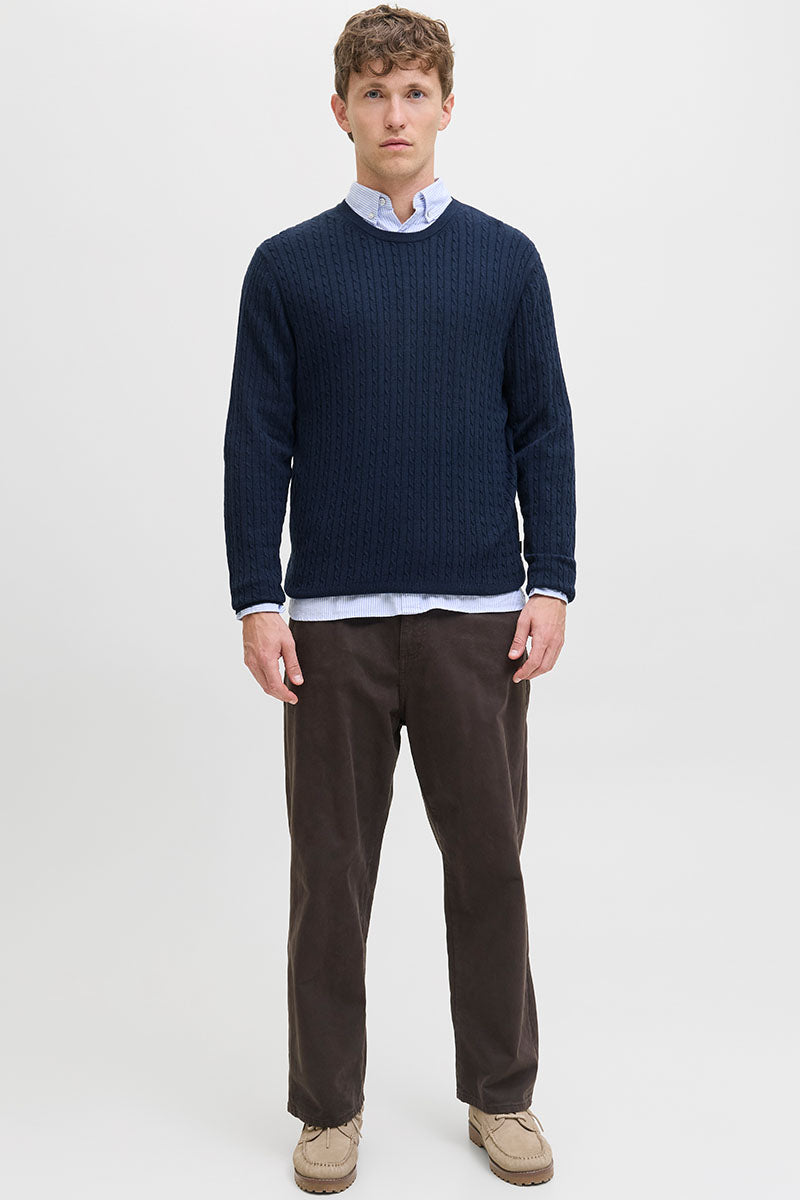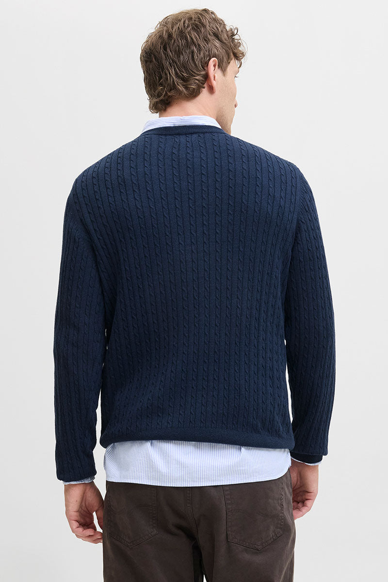 Emil Knit Cable Crew Neck Navy Blazer