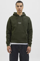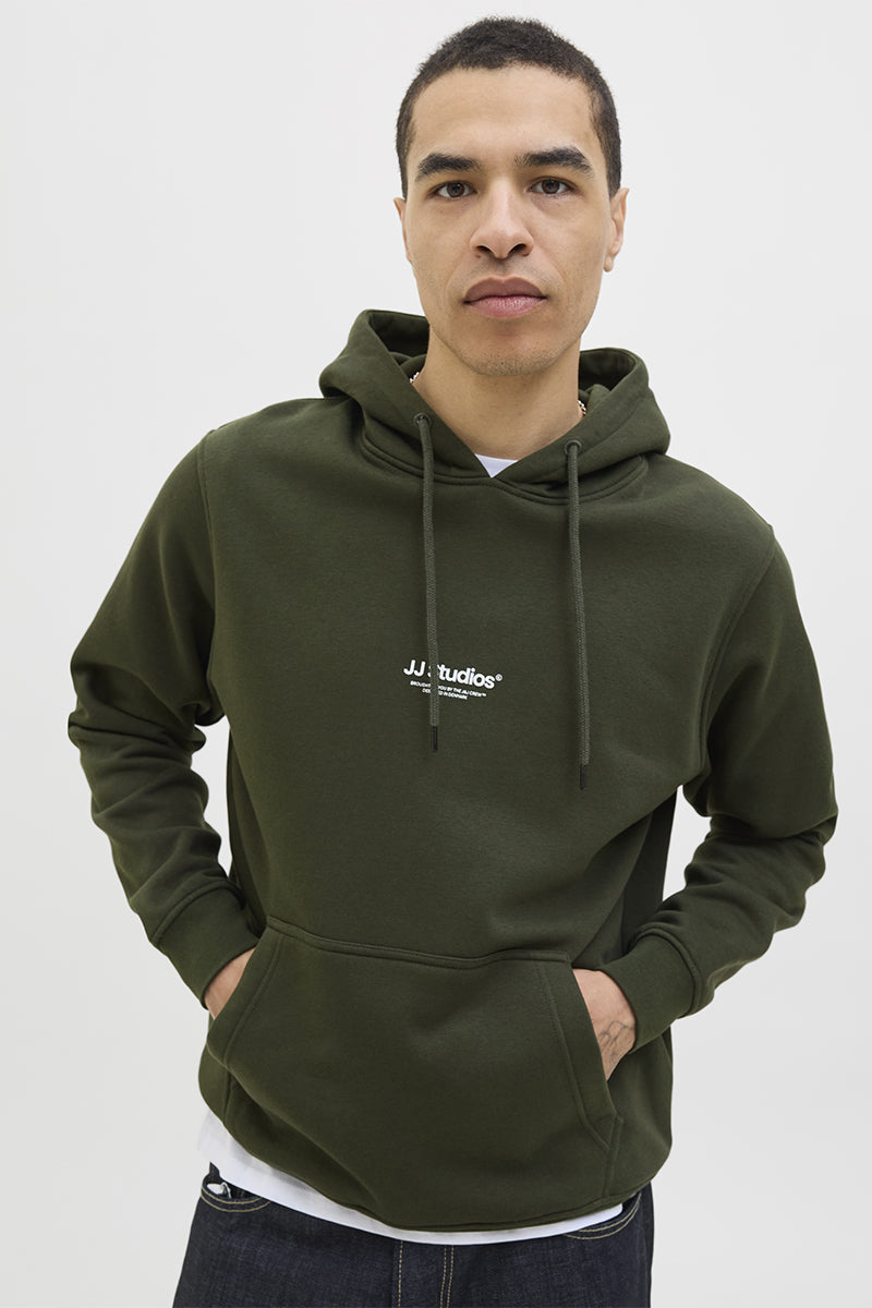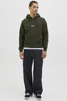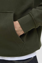 - De hoodie heeft een kangaroo‑zak en ribboorden bij mouwen en zoom