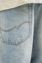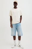 - Lichtblauwe denimshorts in extra baggy fit.