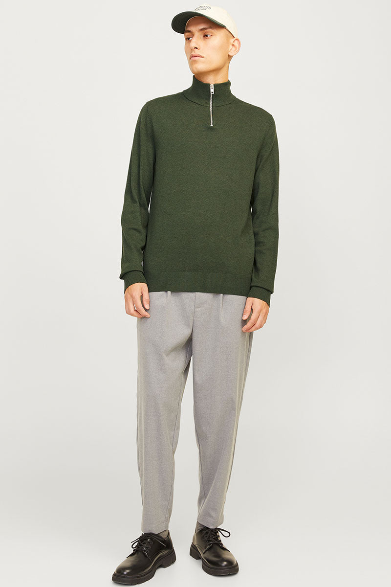 JJEEMIL KNIT HALF ZIP NOOS Dark Grey Melange
