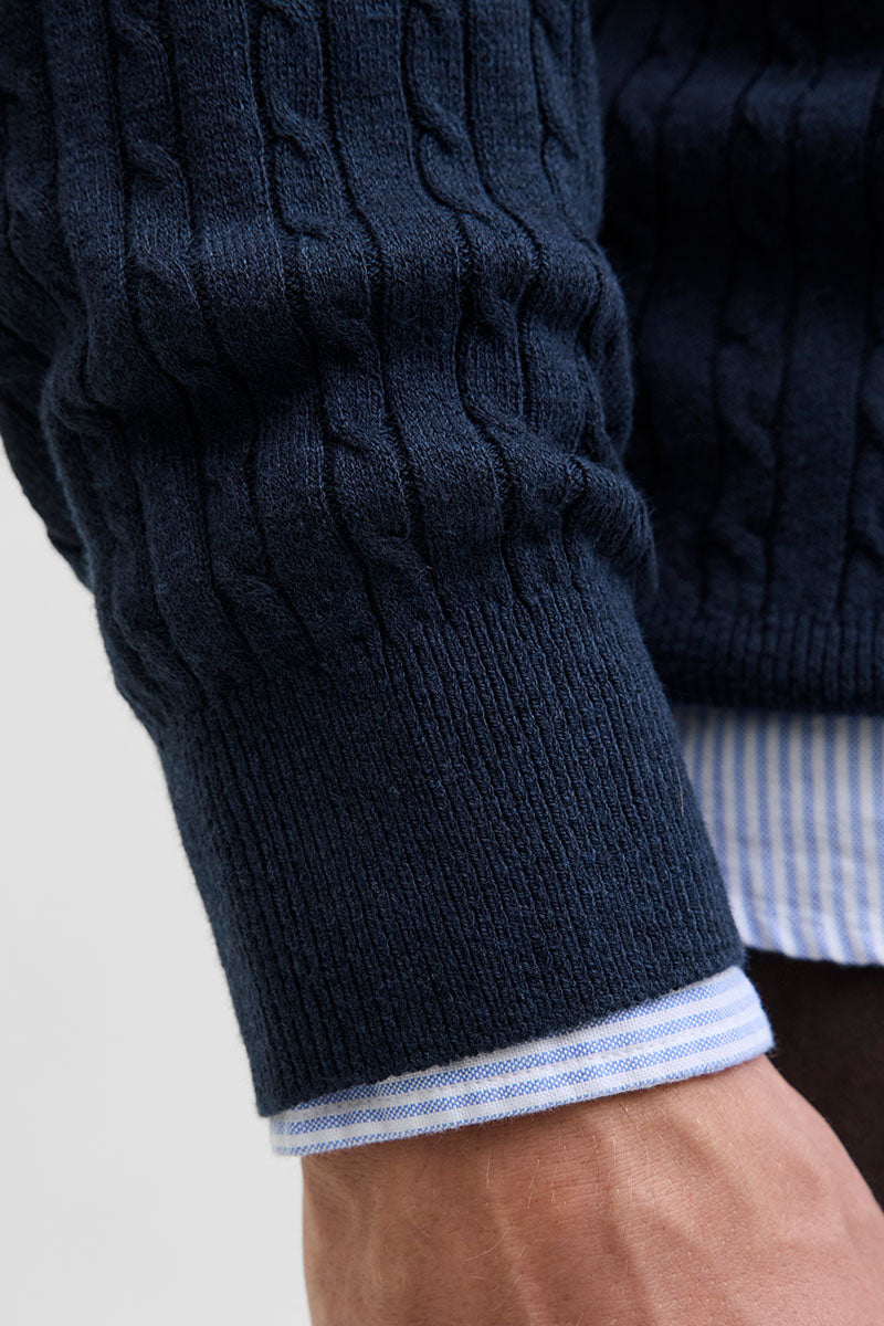 Emil Knit Cable Crew Neck Navy Blazer