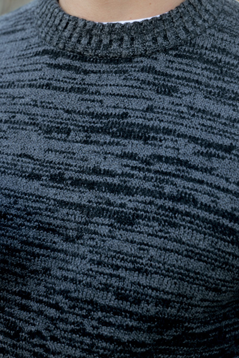 Emil Knit Cable Crew Neck Dark Grey Melange
