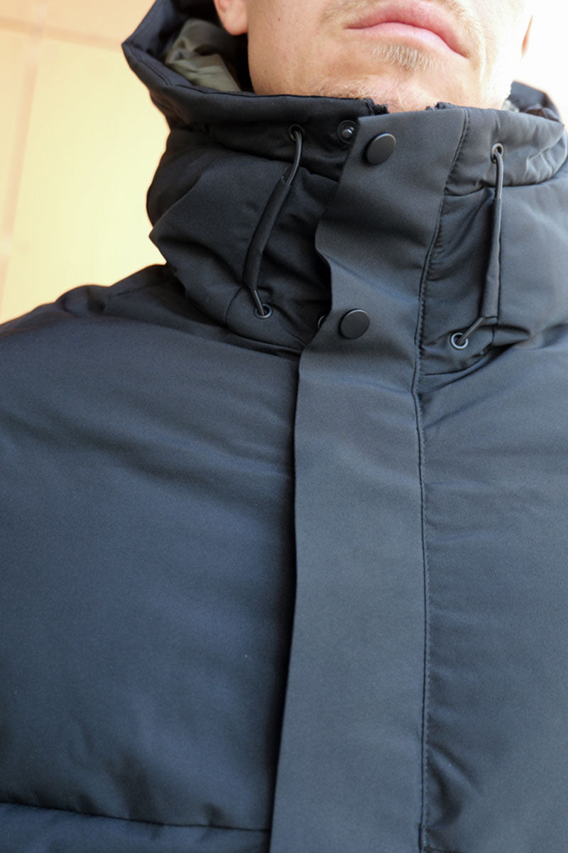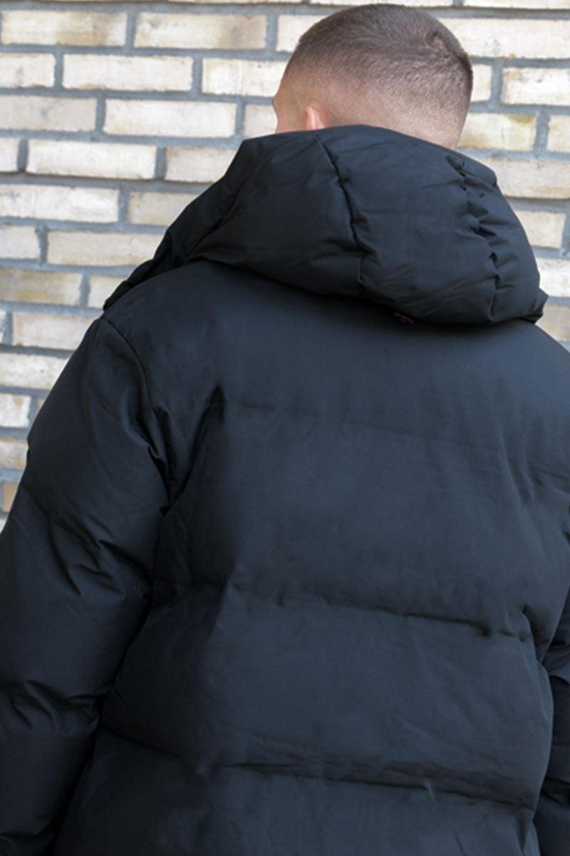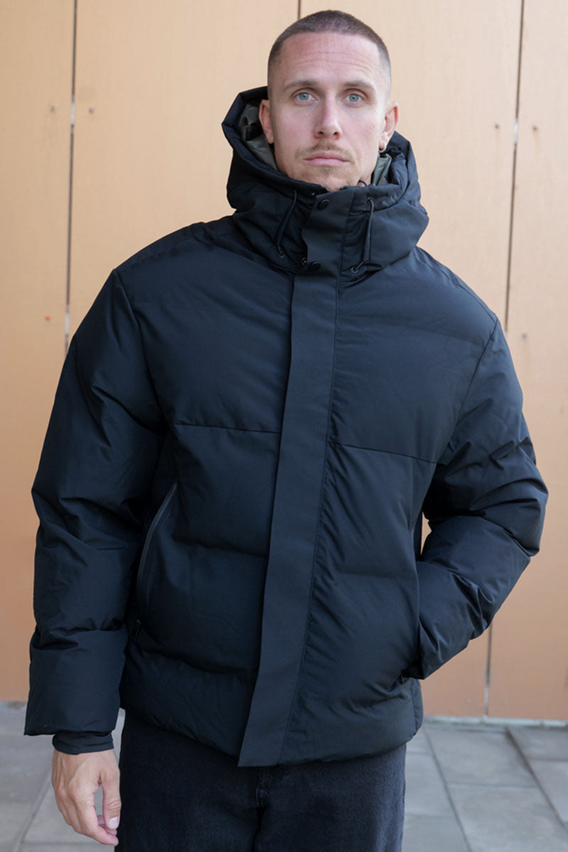 - Zwarte donsjas met winddichte functie
