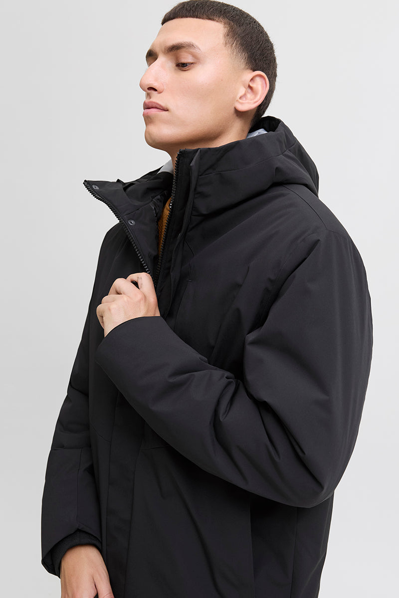 - Effen parka jas met capuchon
