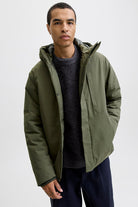 - Effen parka jas met capuchon
