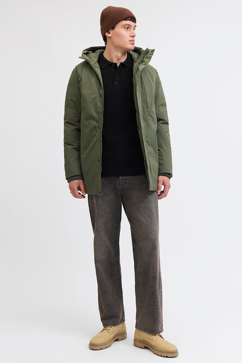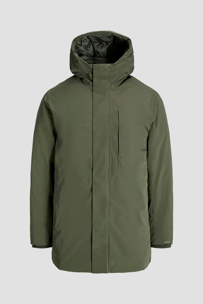 - Effen parka jas met capuchon