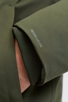 - De jas heeft 2 schuine voorzakken en een borstzak. De jas is wind- en waterafstotend