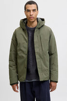 - Effen parka jas met capuchon