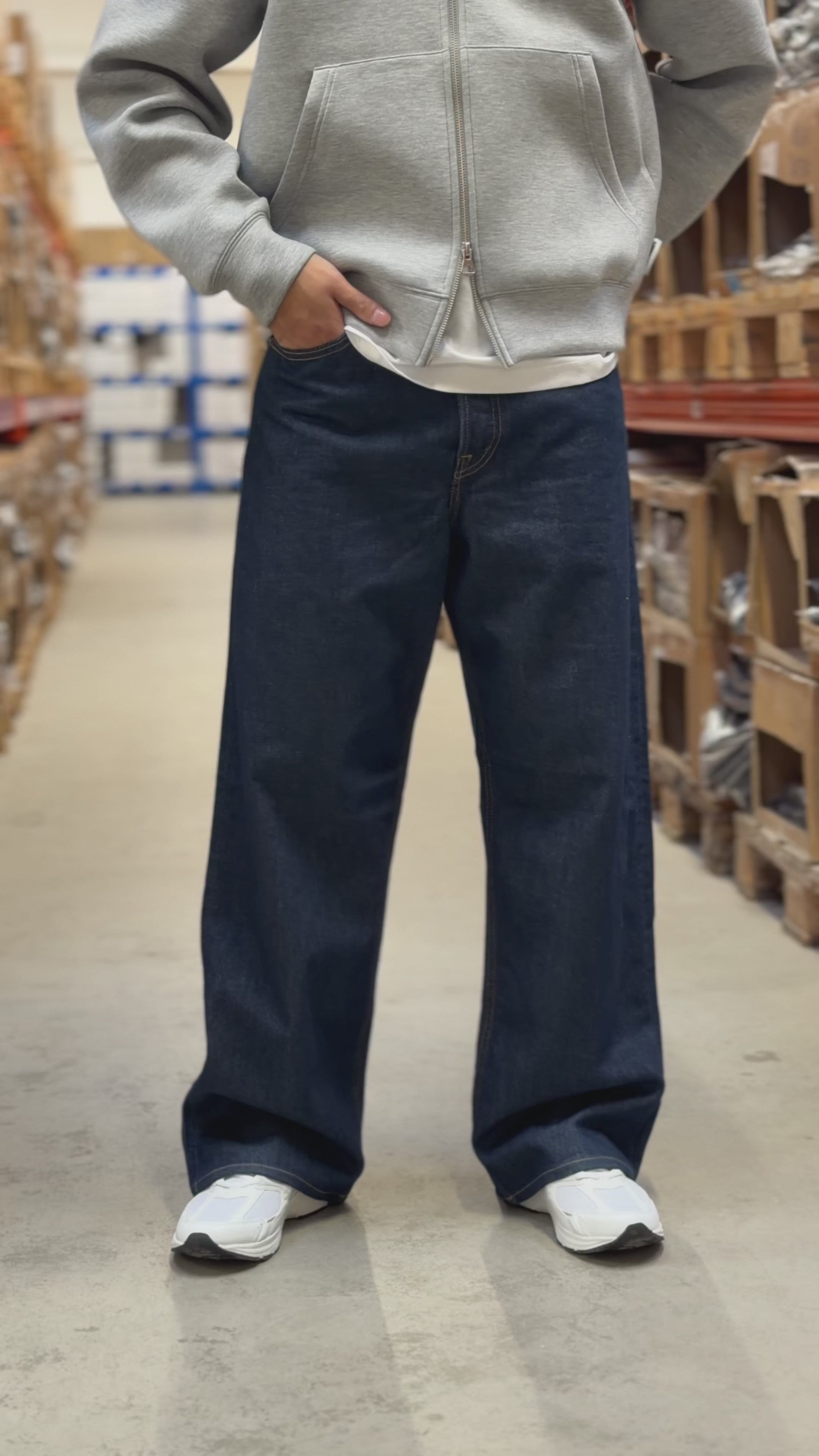 Deze Wide Leg jeans combineert tijdloze eenvoud met een comfortabele pasvorm. Gemaakt van 95% katoen en 5% gerecycled katoen, voelt de stof zacht en ademend aan, perfect voor dagelijks draagcomfort. Het model heeft een mid-rise taille en een ruime pasvorm met een baggy dijbeen en wijde pijpen, wat zorgt voor een relaxte uitstraling. Dankzij de klassieke vijfzakken en een knoopsluiting blijft het ontwerp zowel functioneel als stijlvol.