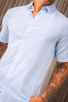 - Lichtblauw kort mouw linnen overhemd in slim fit