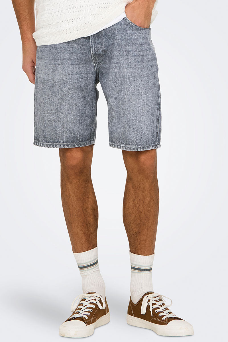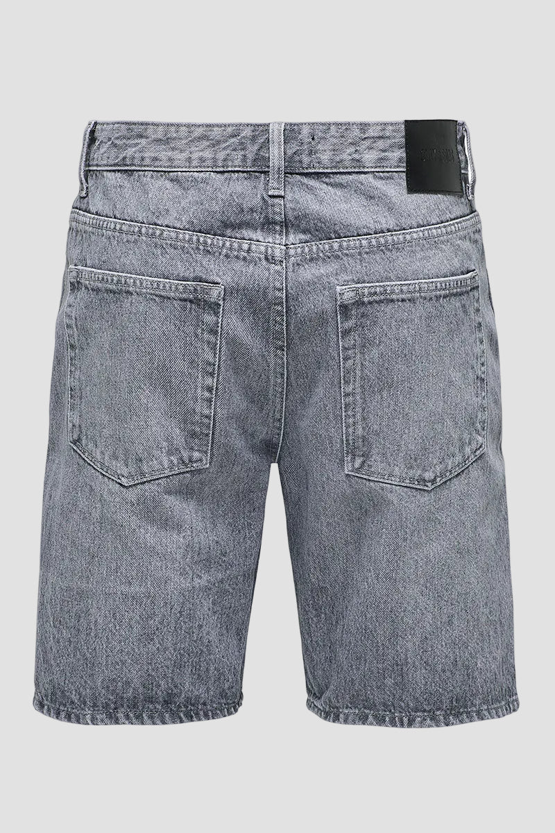 Edge Straight Fit Denim Shorts Medium Grey Denim