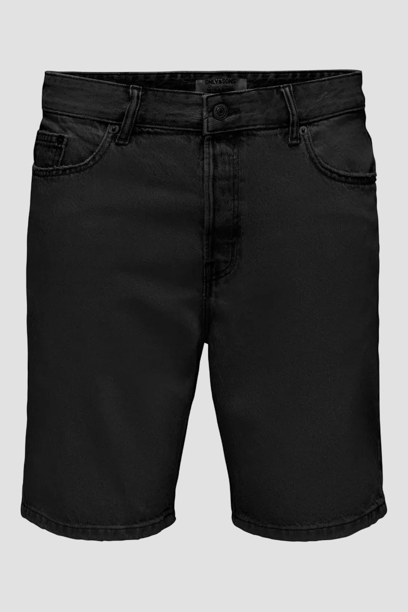 Edge Straight Fit Denim Shorts Black Denim