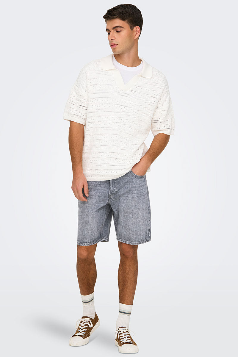 Edge Straight Fit Denim Shorts Ecru