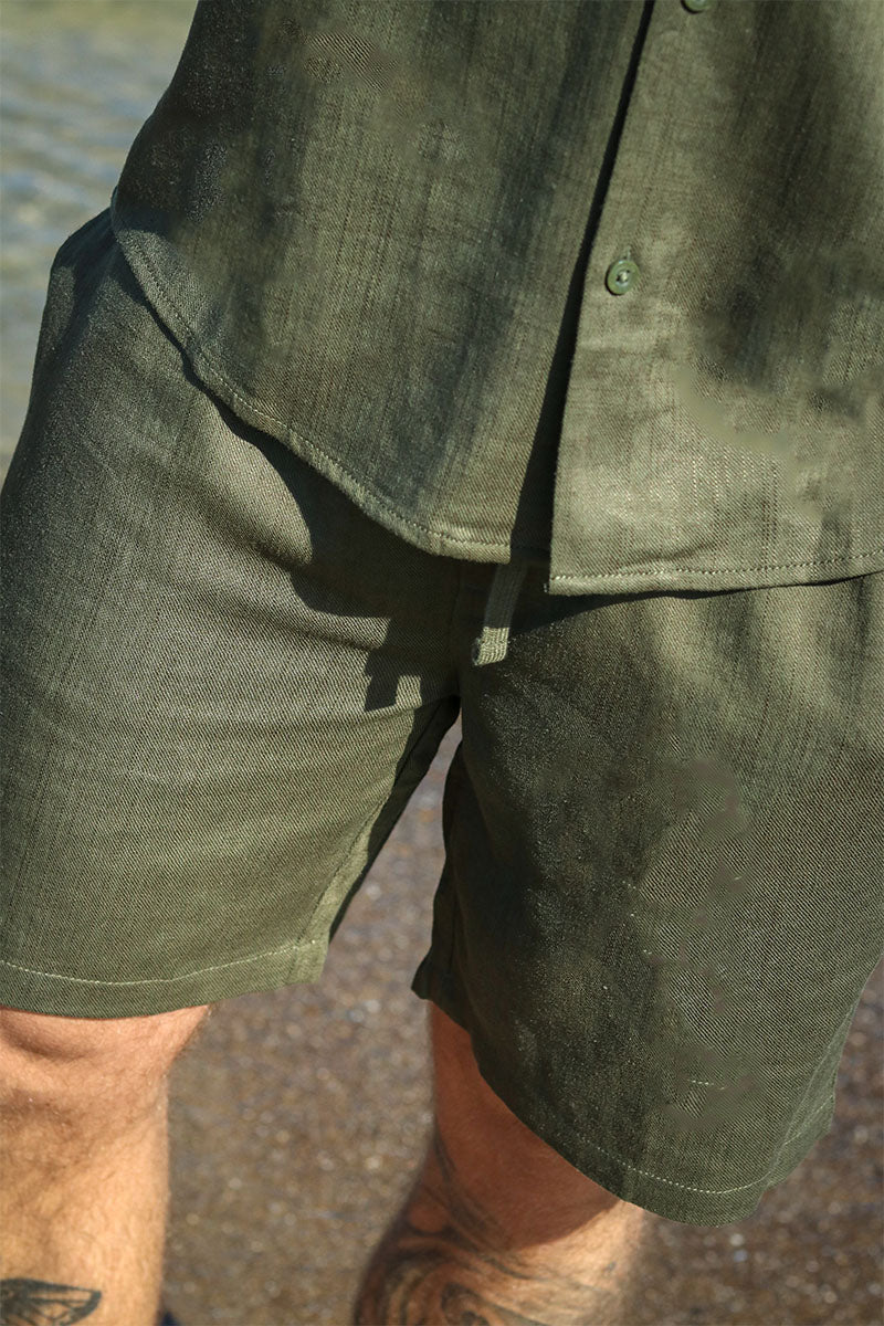 Tel Viscose Linen Shorts Olive Night