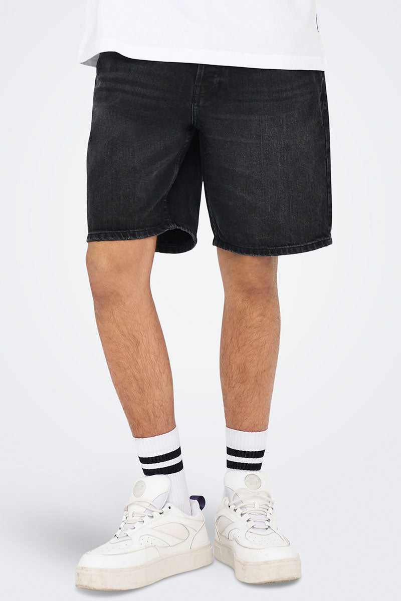 Edge Denim Shorts Washed Black