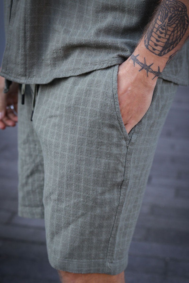 Bertil Waffle Shorts Deep Lichen Green