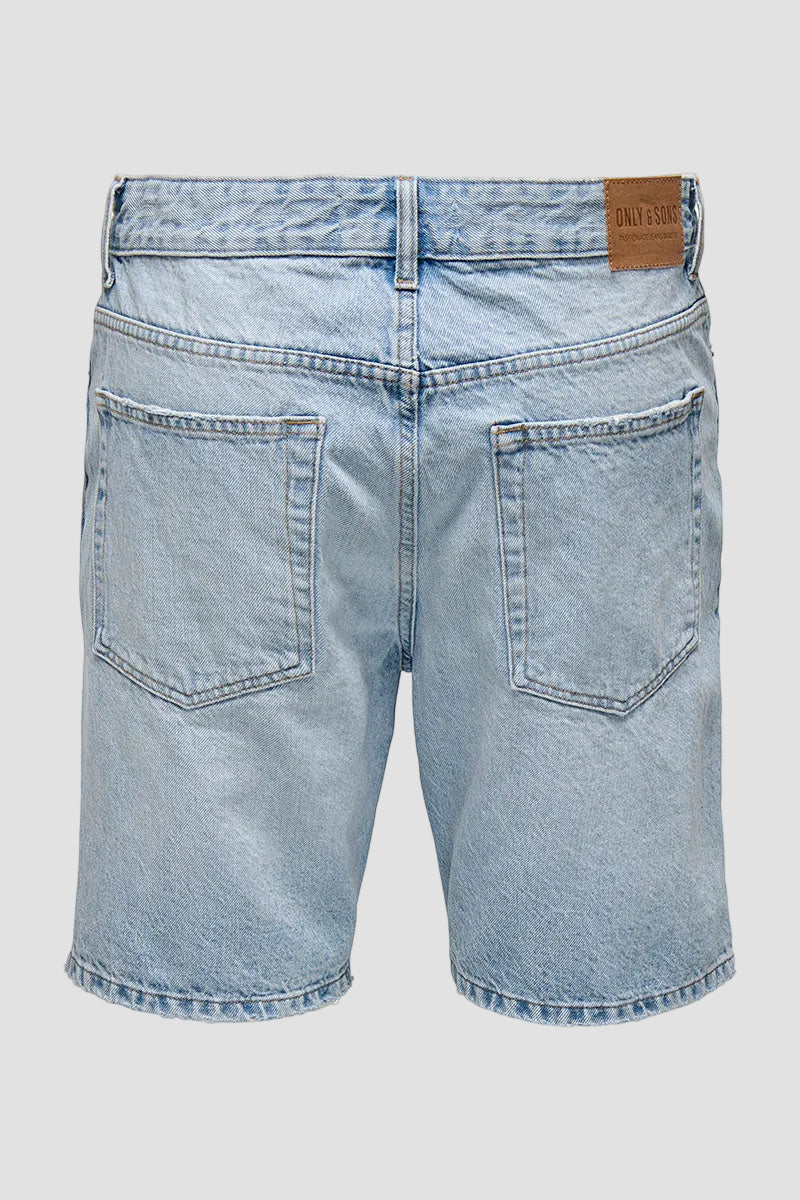 Edge Straight Fit Denim Shorts Light Blue Denim