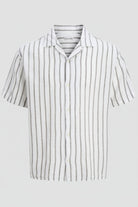 Dit resort overhemd heeft een ontspannen pasvorm en korte mouwen, perfect voor een stijlvolle zomerse look. De stof is geweven, een sterk en duurzaam materiaal dat niet rekt zoals breisels, wat bijdraagt aan het comfort en de kwaliteit. De rustige strepen en de dusty olive kleur geven het overhemd een tijdloze uitstraling, terwijl het lichte materiaal prettig draagt tijdens warm weer.