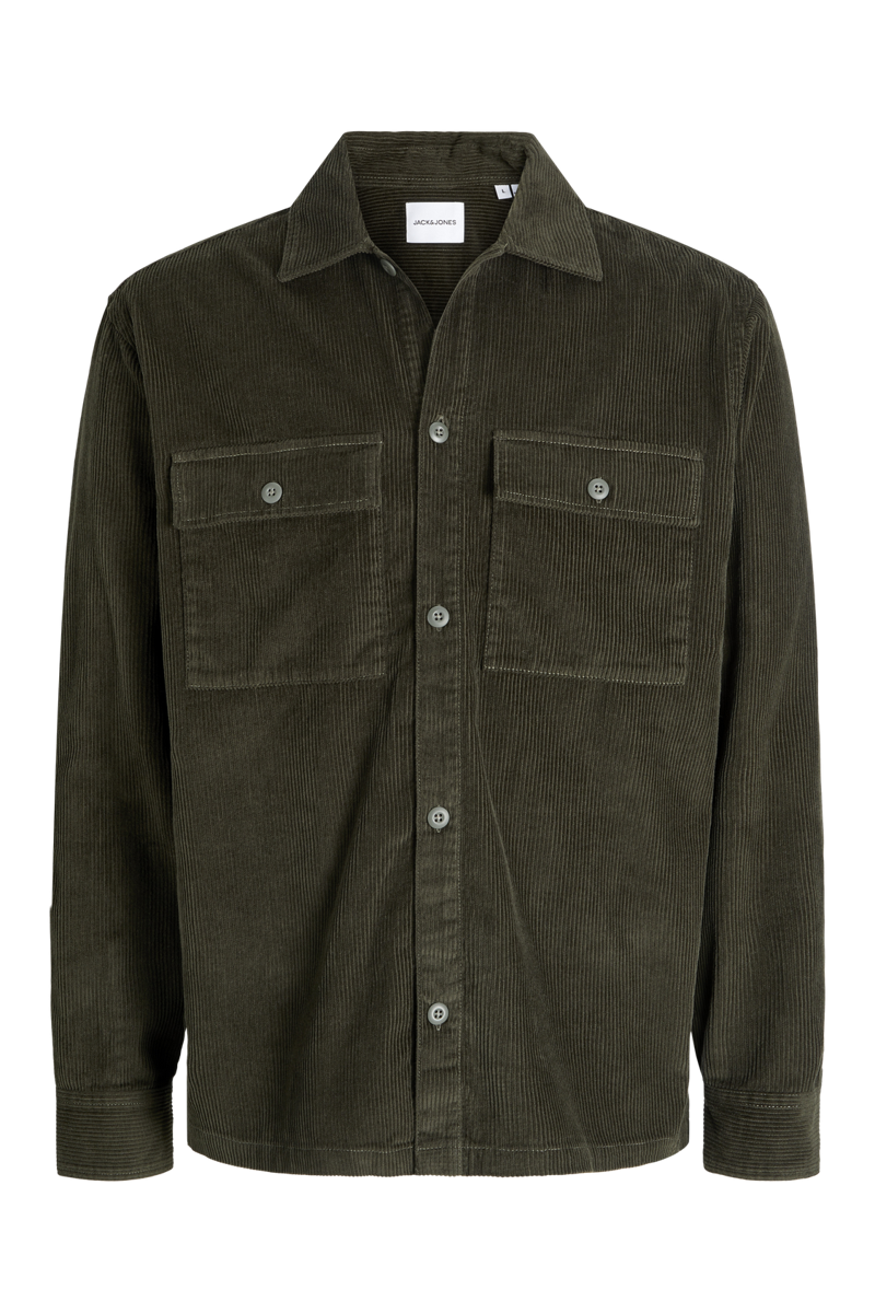 - De overshirt heeft een klassieke kraag, twee voorzakken en knoopsluiting plus knoop aan de mouwen