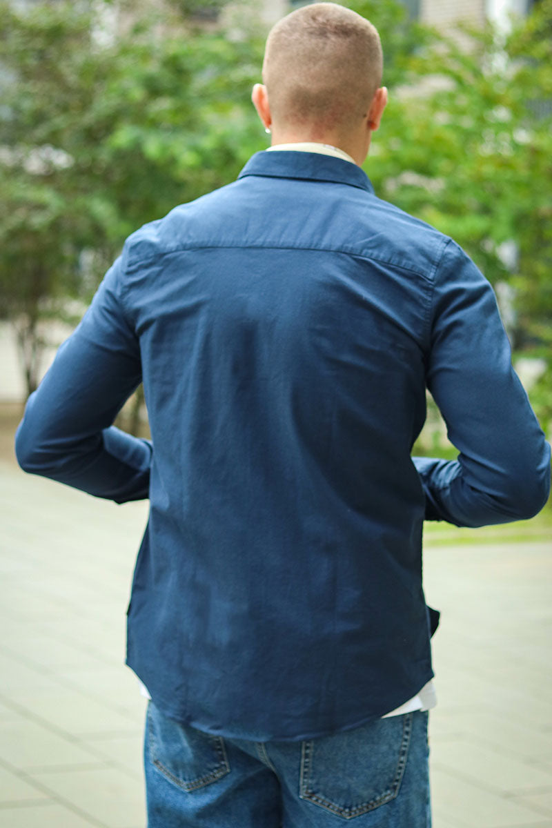 Oxford Stretch Plain L/S Navy
