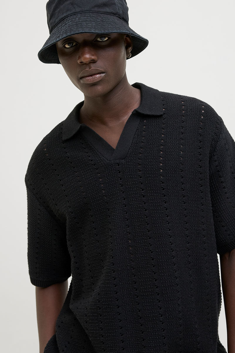 Aros Knit Easter SS Crochet Polo Black