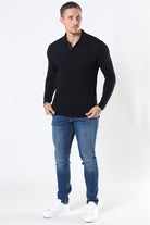 Muscle Fit Polo LS Black