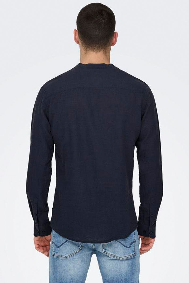 CAIDEN LS SOLID LINEN MAO SHIRT Night Sky