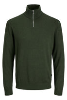 - Donkergroene trui met lange mouwen en halve rits