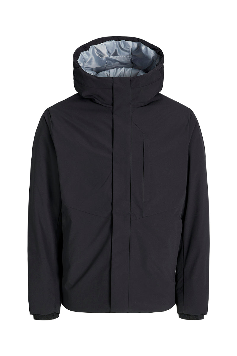 - De jas heeft 2 schuine voorzakken en een borstzak. De jas is wind- en waterafstotend