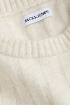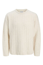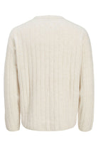 - Platgebreide trui met ronde hals en lange mouwen