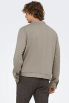 - Beige bomberjack met lange mouwen